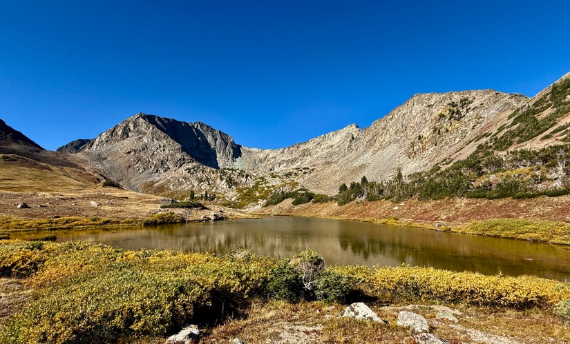 After snapping some photos with the RMNP boundary sign and the scenery, I headed back to American Lakes. There is another lake beyond American Lakes, Snow Lake, that I was debating climbing up to as it sits under Static Peak and Nokhu Crags in stunning setting. I wound my way through a faint trail in the direction of Snow Lake, dodging backcountry campsites (which made me make a mental note this could be a great short backpacking trip without the hassle of obtaining permits half of a year in advance).