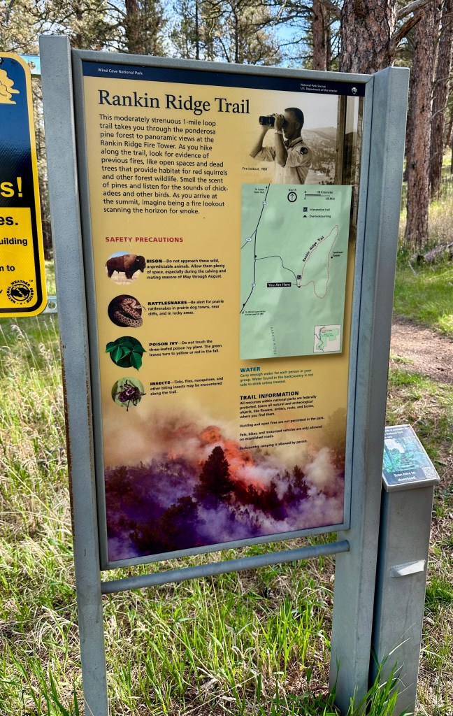 Special Considerations: This hike is in Wind Cave National Park, which is free to enter. You may encounter bison on the drive to the trailhead (and maybe on the trail), so keep your distance. Rankin Ridge is the highest point in the park, and is prone to afternoon thunderstorms, so use caution if storms are in the area – you don’t want to mess with lightning! No pets are allowed on the trail.