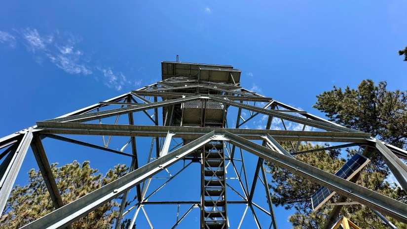 Out of the trees, we traversed a short ridge to the high point at 5,021 feet. The historic fire lookout tower was built in the 1950s, and now only rarely used during extreme fire conditions.
