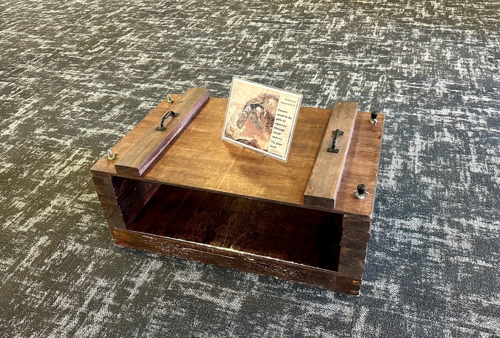 Before heading on to Cheyenne, we stopped by the visitor center, completing junior ranger books, stamping passports, and watching me slide through another caving tour sizing box.
