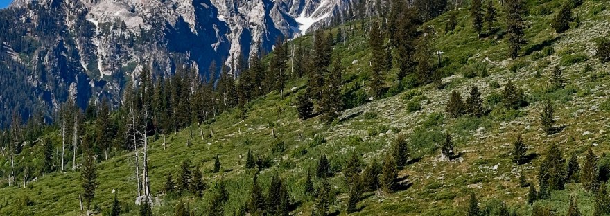 Leigh Lake is a backcountry lake only accessible by foot or watercraft. In contrast to String Lake, it is much larger (2.4 miles/3.9 km wide and 2.8 miles/4.5 km long from north to south), deeper, colder, and windier. There are several boat-in backcountry campsites dotting its shore, and it also butts up to Paintbrush and Leigh Canyons. The lake can be enjoyed by hikers as well, as trails follow its shores.