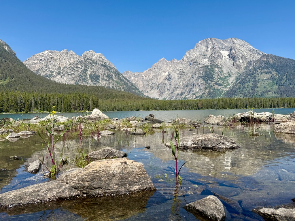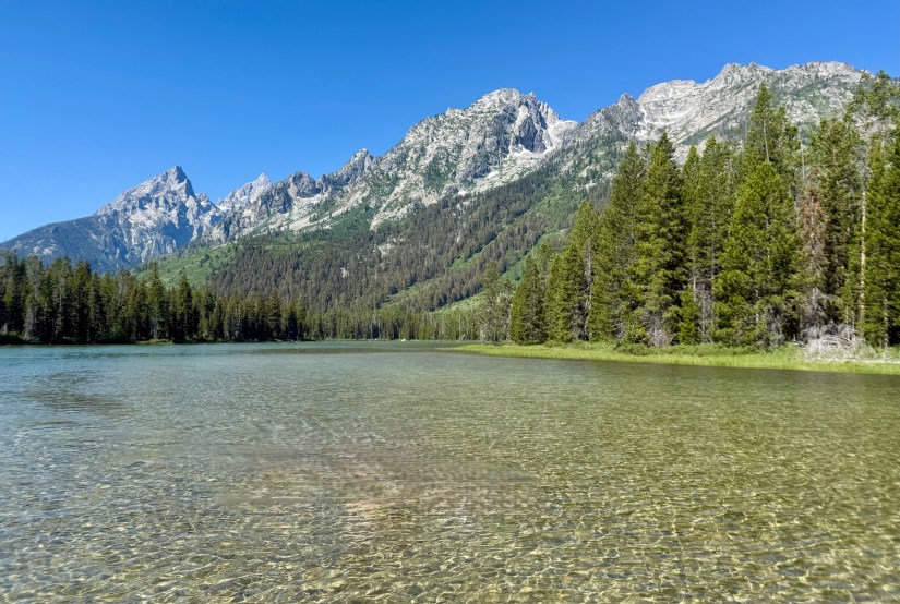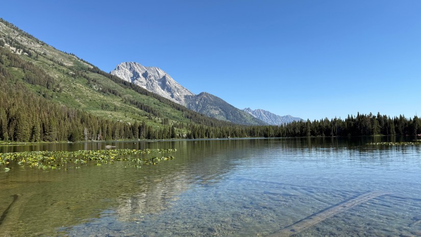 Shocked by the warm waters, I immediately set course to the far end of String Lake, where I noticed a field of water lilies. The lake’s waters are insanely clear, and I enjoyed to seeing the entirety of the water lilies right down to their roots, and also the numerous fish searching for a meal along the lake bottom.