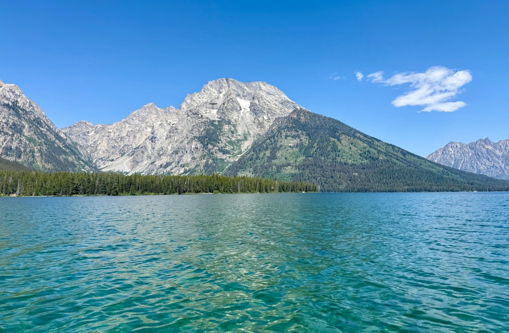 String Lake and Leigh Lake are connected by a short portage of about 150 yards (allegedly – it feels like miles…), and are very popular places for SUP, kayaking, and swimming. String Lake indeed looks like a string on the map, and is quite shallow (I bottomed out the SUP at one point!) so the water stays decently warm. At 5’10”, I could easily stand on the lake bottom in most places on String Lake. Grand Teton and Teewinot frame the view to the south, and as you paddle north Mount Moran comes into view.