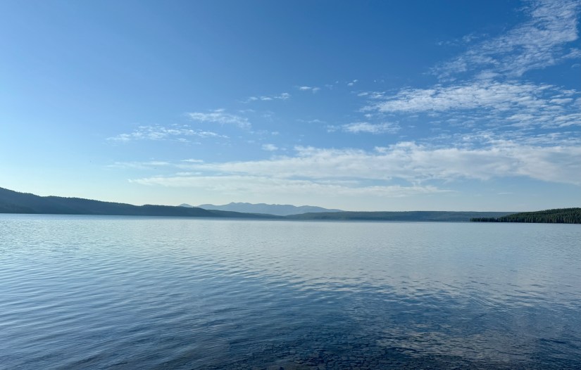With a hike of over seven miles and a backcountry geyser basin awaiting me, I was antsy to get out of camp. I downed my biscuits & gravy and coffee after tearing down camp, and before long was setting out across the North Shore Shoshone Lake trail to the western side of the lake, where home for the night at Basin Bay Point. I noted high cirrus clouds in the sky – a sign of changing weather.