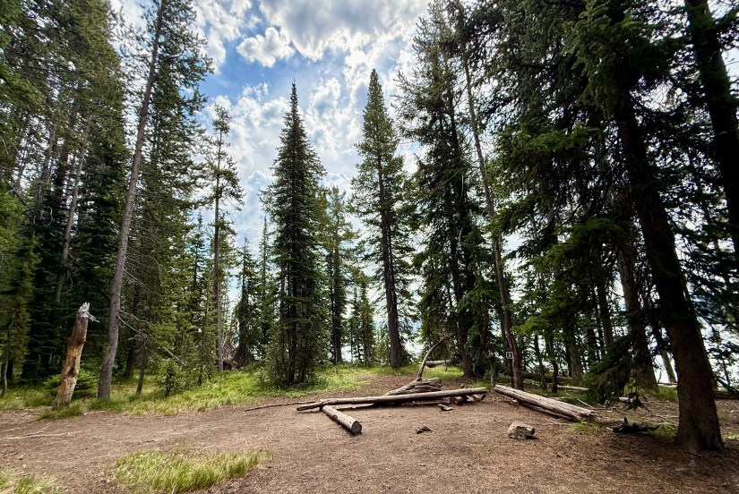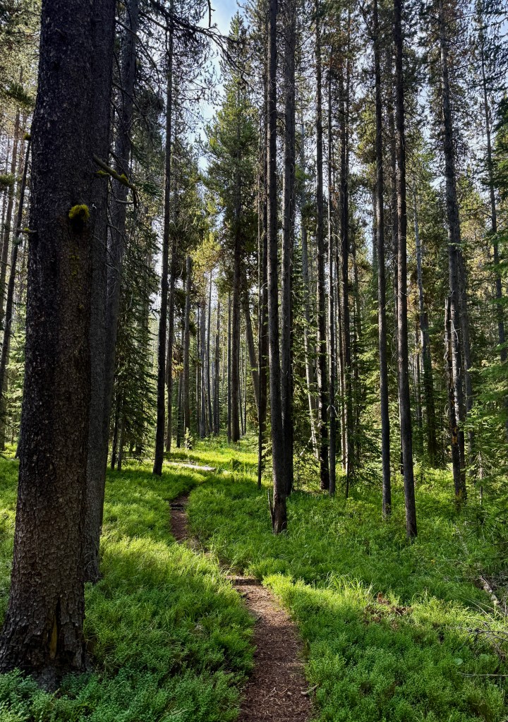 The trail quickly turns away from the shores of Shoshone Lake, and meanders through the forest. There are a LOT of PUDs (pointless ups and downs) on this trail, which can be tiring, with a few steep sections. I spent the time singing little songs in my head and just trying to cruise as fast as I could towards camp.