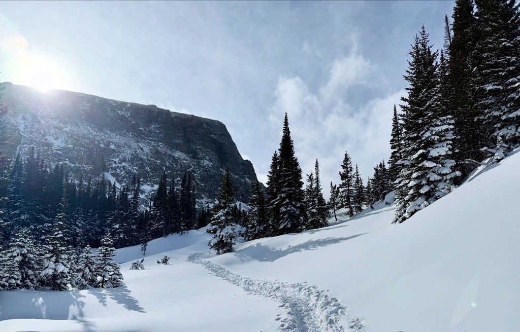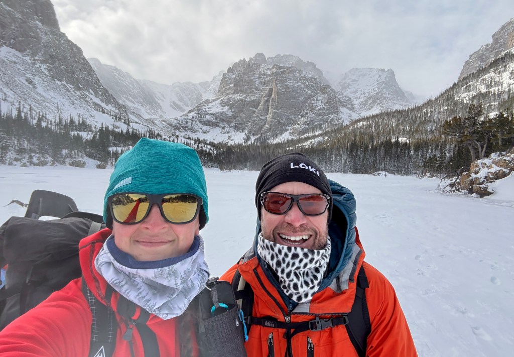 I wrapped up the month by skiing (yay, no issues with skiing!), taking an introduction to indoor rock climbing class with my bestie, and on New Year’s Eve my friend, Tom, and I headed up to The Loch in Rocky Mountain National Park. Initially I had planned for us to go all the way to Sky Pond, but I found myself tiring really fast. It was also 14 degrees out, and Tom was bundled up in all his warm layers… and I was debating stripping down to my sports bra and was sticking my face in the snow to try to cool down my body and get the vertigo under control…