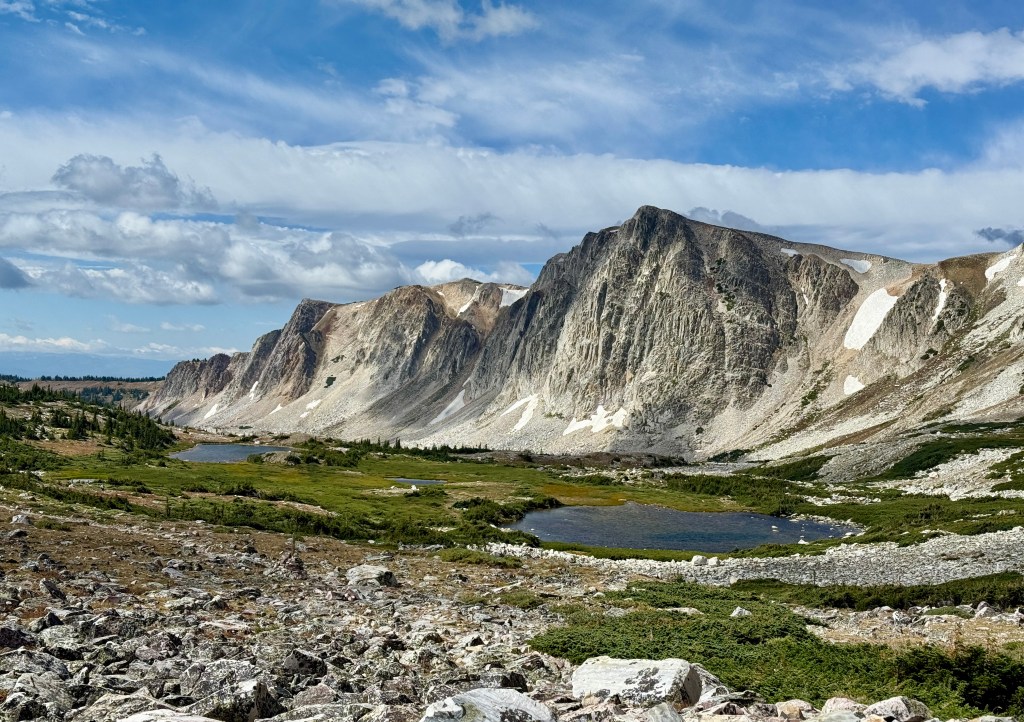 After coming home from vacation a week early (which worked out in the end, as I flared up some nasty bursitis in my right heel in a hard lesson learned about shoes my feet like for backpacking), I squeezed in one last hike in with Janice and Taylor to several alpine lakes in the Snowies.